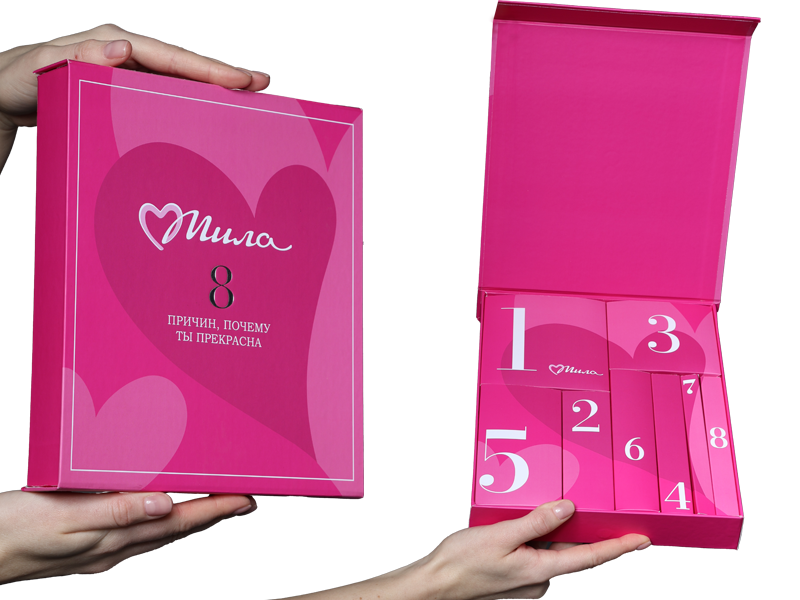 - по способу печати и послепечатной отделки коробки: цифровая полноцветная печать, офсетная печать, лакировка, ламинация, тиснение, УФ-печать и др.